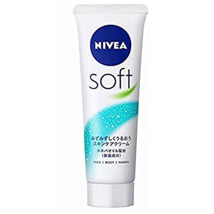 ニベア青缶は粘土の高いテクスチャーですが、ニベアソフト スキンケアは乳液のようなサラッとした使い心地の商品です。